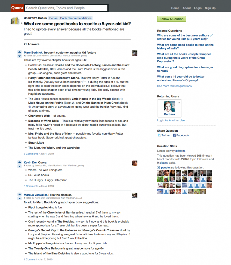 Im Optimalfall bekommst du innerhalb weniger Tage, oft sogar innerhalb von Stunden einige Antworten, die sich wie die Kommentare bei Facebook aneinanderreihen. Manche Antworten fallen kurz aus, manchmal erhält man ausführliche Stellungnahmen und natürlich wird auch oft verlinkt. Meistens erhält man aber sehr qualifizierte Antworten von Experten aus dem jeweiligen Themenbereich. Quora ist also ein Paradies für Wissbegierige und Fachidioten. Allerdings nur für solche, die des Englischen mächtig sind. Bisher gibt es nämlich nur eine Sprachversion, und die Nutzer verständigen sich weitgehend auf Englisch.